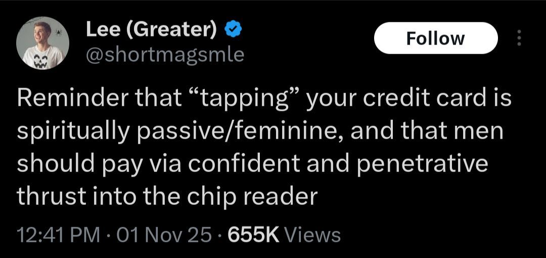 irelephant [he/him]@lemmy.dbzer0.comEnglish · edit-28 months agoThe manosphere is very normal.plus-squarelemmy.dbzer0.comimagemessage-square0fedilinkarrow-up11arrow-down10