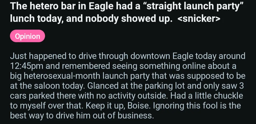 arrow-up11arrow-down1imageThe owner of the "hetero bar" is probably not ok right now.plus-squarelemmy.zipKrimson Klaww @lemmy.zipEnglish · 9 months agomessage-square0fedilink