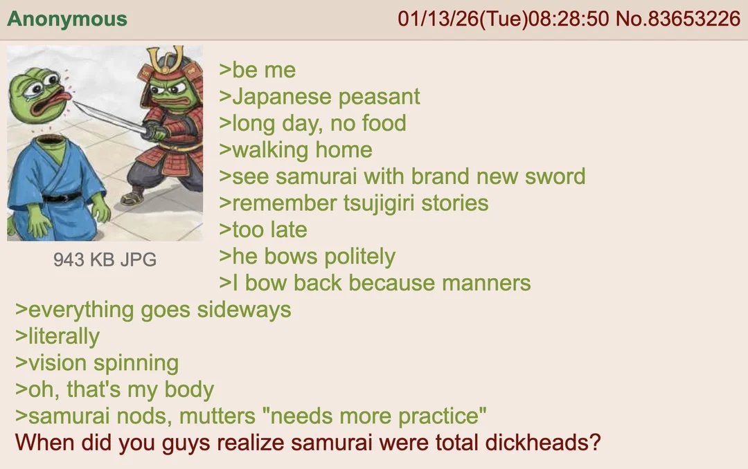 🍹Early to RISA 🧉@sh.itjust.worksM · 2 days agoAnon is a Japanese peasantsh.itjust.worksimagemessage-square25fedilinkarrow-up1346arrow-down16