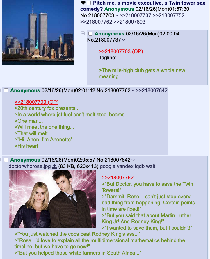 kali_fornication@lemmy.world to Greentext@sh.itjust.works · 15 days ago/tv/ pitches a comedylemmy.worldimagemessage-square0fedilinkarrow-up12arrow-down10